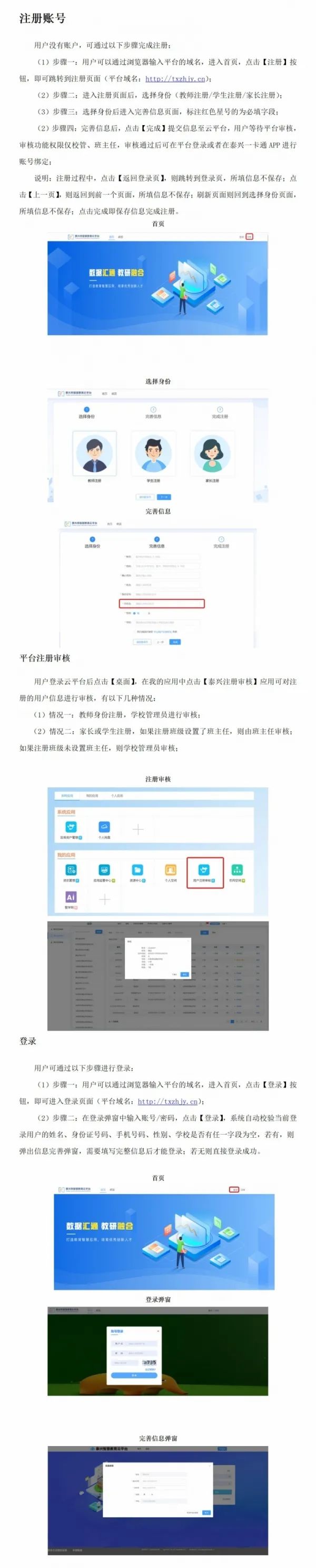 用戶登錄泰興一卡通APP,底部菜單點(diǎn)擊【生活服務(wù)】,在【校園教育】中點(diǎn)擊應(yīng)用,有以下三種情況: 情況一:用戶沒有泰興市智慧教育云平臺(tái)賬號,進(jìn)入賬號綁定頁面,可根據(jù)友情提示,在電腦上搜索”泰興市智慧教育云平臺(tái)“完成注冊,具體步驟參考下圖: