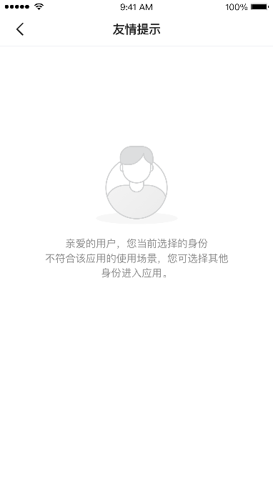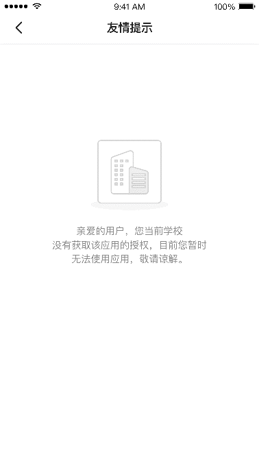 選擇身份 友情提示用戶登錄泰興一卡通APP,底部菜單點(diǎn)擊【生活服務(wù)】,在【校園教育】中點(diǎn)擊應(yīng)用,成功綁定賬號并選擇身份后,有以下四種情況:情況一:用戶綁定的賬號選擇的身份,該應(yīng)用有權(quán)限,則不進(jìn)入友情提示頁面,直接進(jìn)入該應(yīng)用頁面;情況二:用戶綁定賬號機(jī)構(gòu)或?qū)W校沒有該應(yīng)用權(quán)限,進(jìn)入友情提示頁;情況三:用戶綁定賬號的機(jī)構(gòu)或?qū)W校有應(yīng)用權(quán)限,但是用戶選擇的身份沒有該應(yīng)用權(quán)限,進(jìn)入友情提示頁;情況四:用戶綁定的賬號選擇的身份沒有應(yīng)用權(quán)限,進(jìn)入友情提示頁;