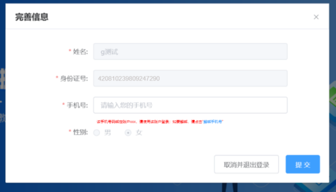 登錄時(shí)完善信息