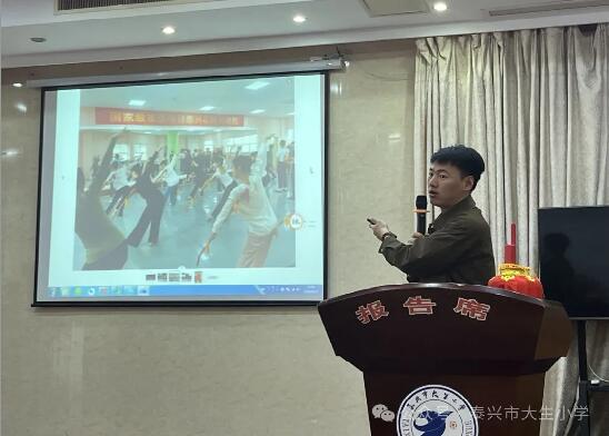 緊接著,胡盛主任問隊(duì)員們“你們知道我國的民族舞有哪些嗎?”在這一問一答中,隊(duì)員們對我們泰興本土文化——泰興花鼓產(chǎn)生了濃厚的興趣。 胡盛主任用一張張精美的圖片,向隊(duì)員們介紹泰興花鼓發(fā)源于泰興市廣陵區(qū)南沙鄉(xiāng)的一種民間舞蹈,因?yàn)橛玫谰?ldquo;紅燈”照明,所以又稱“夜火燈”,至今已有三四百年的歷史,目前可追溯四代傳承。我們的“泰興花鼓”在150年前就成為成熟的民間舞蹈。 胡盛主任又用一段段精彩的表演視頻,生動地向隊(duì)員們講述了“泰興花鼓”的曲調(diào)主要有三個,分別是花鼓調(diào)、跨金索和倒花籃,有著濃郁的蘇北民間小調(diào)風(fēng)味,氣氛熱烈、歡快、喜慶。