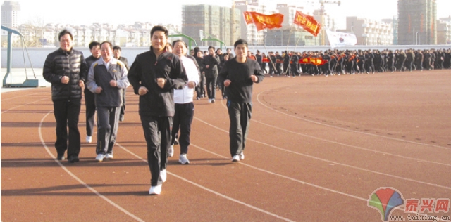 寒冷的天氣絲毫沒(méi)有阻擋我市干部群眾迎接新年的熱情。上午8點(diǎn),來(lái)自四面八方的長(zhǎng)跑隊(duì)伍已經(jīng)匯聚在市三高體育場(chǎng),他們即將從這里出發(fā),開(kāi)始萬(wàn)人長(zhǎng)跑活動(dòng)。長(zhǎng)跑活動(dòng)開(kāi)始之前,首先舉行了升國(guó)旗儀式。 張兆江、高亞梓等市四套班子領(lǐng)導(dǎo)參加了長(zhǎng)跑活動(dòng)。市長(zhǎng)高亞梓向全市人民致新年賀詞。他說(shuō),長(zhǎng)跑是考驗(yàn)?zāi)土、錘煉意志、強(qiáng)健筋骨的有益運(yùn)動(dòng)。人生如長(zhǎng)跑,推進(jìn)“學(xué)趕蘇南、跨越發(fā)展”,建設(shè)幸福美好泰興也像一次長(zhǎng)跑。一年來(lái),我們“學(xué)趕”的腳步始終堅(jiān)實(shí)有力,我們“跨越”的步伐始終豪邁穩(wěn)健。 高亞梓說(shuō),面對(duì)復(fù)雜形勢(shì)和罕見(jiàn)突發(fā)事件的嚴(yán)峻考驗(yàn),全市上下緊緊圍繞市委、市政府決策部署,在迎接挑戰(zhàn)中把握機(jī)遇、在戰(zhàn)勝困難中贏得主動(dòng),跑出了負(fù)重前行的勇氣、爭(zhēng)先進(jìn)位的銳氣和昂揚(yáng)向上的朝氣。 高亞梓說(shuō),全市經(jīng)濟(jì)活力持續(xù)增強(qiáng),各項(xiàng)事業(yè)全面進(jìn)步,社會(huì)發(fā)展日趨和諧,順利通過(guò)省小康縣市驗(yàn)收,在全國(guó)縣域經(jīng)濟(jì)基本競(jìng)爭(zhēng)力百?gòu)?qiáng)縣市中排名升至第46位,躋身中國(guó)產(chǎn)業(yè)發(fā)展能力百?gòu)?qiáng)縣市行列,為“十一五”畫上了圓滿句號(hào)。2011年是“十二五”規(guī)劃的開(kāi)局之年。新的起點(diǎn),新的征程,任務(wù)艱巨,使命光榮。舉辦元旦萬(wàn)人長(zhǎng)跑活動(dòng),一方面是為了深入推進(jìn)全民健身運(yùn)動(dòng),努力營(yíng)造全民健身的良好社會(huì)氛圍;另一方面也是為了進(jìn)一步激發(fā)全市人民萬(wàn)眾一心、拼搏進(jìn)取的豪情和斗志。 高亞梓希望大家以這次活動(dòng)為契機(jī),再掀全民健身新高潮。同時(shí),把參與健身的精神和毅力轉(zhuǎn)化為工作動(dòng)力,緊緊圍繞“領(lǐng)先蘇中、再創(chuàng)輝煌”的目標(biāo)追求,堅(jiān)持開(kāi)放創(chuàng)新“雙輪驅(qū)動(dòng)”,堅(jiān)定不移走科學(xué)、跨越發(fā)展之路,爭(zhēng)創(chuàng)新優(yōu)勢(shì),實(shí)現(xiàn)新跨越,努力建設(shè)更高水平小康社會(huì),為開(kāi)創(chuàng)“十二五”發(fā)展新局面、開(kāi)啟基本實(shí)現(xiàn)現(xiàn)代化新征程而不懈奮斗。 市委副書(shū)記、市政協(xié)主席張澤民向長(zhǎng)跑活動(dòng)冠名單位——江蘇愛(ài)群商貿(mào)有限公司負(fù)責(zé)人授“貢獻(xiàn)杯”。 市委書(shū)記張兆江宣布長(zhǎng)跑活動(dòng)正式開(kāi)始并鳴槍發(fā)令。 市四套班子負(fù)責(zé)人,市級(jí)機(jī)關(guān)各部門及有關(guān)單位負(fù)責(zé)同志,在城機(jī)關(guān)干部、企事業(yè)單位職工、社區(qū)居民、學(xué)生以及健身項(xiàng)目展示人員代表,共計(jì)1萬(wàn)2千多人參加了長(zhǎng)跑活動(dòng)。全體人員在此起彼伏的口號(hào)聲中快步向前,浩大的隊(duì)伍沿著南二環(huán)路左轉(zhuǎn)至文江路,最終到達(dá)中興大道,長(zhǎng)跑全程2.6公里。振奮人心的宣傳標(biāo)語(yǔ),雄壯的口號(hào)聲和整齊劃一的步伐聲,組合交織成了迎接新年最凝聚人心的旋律,為泰興新一輪的跨越發(fā)展助威吶喊。 在萬(wàn)人長(zhǎng)跑活動(dòng)線路沿線,來(lái)自泰興鎮(zhèn)各個(gè)社區(qū)的健身隊(duì)伍組成了10多個(gè)健身方陣進(jìn)行健身成果展示。活動(dòng)現(xiàn)場(chǎng)共有15個(gè)健身方隊(duì)300多人參加表演,其中包括幼兒拉丁舞、太極拳、功夫扇、健身舞、秧歌、太極刀等多項(xiàng)群眾健身項(xiàng)目,為整個(gè)元旦長(zhǎng)跑活動(dòng)增添了亮點(diǎn)。 |