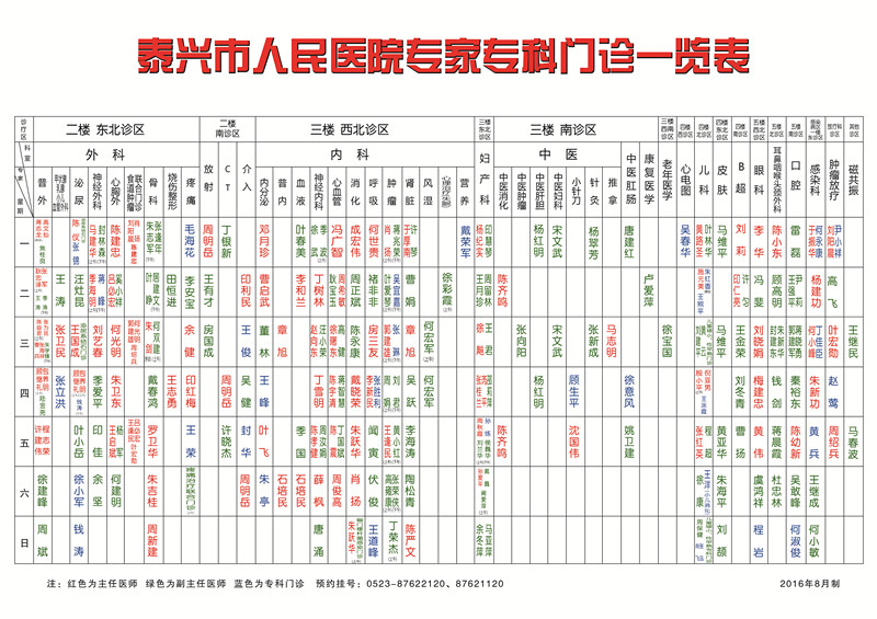 泰興市人民醫(yī)院專(zhuān)家專(zhuān)科門(mén)診一覽表