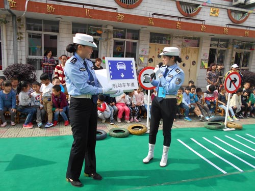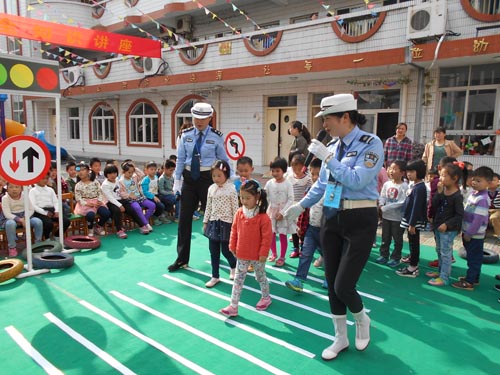 為了進一步落實交通安全宣傳從娃娃抓起,5月6日下午 “全國巾幗文明崗”——江蘇省泰興公安交警大隊女子班的“警花“們來到泰興市中心幼兒園開展道路交通安全宣傳活動。她們?yōu)橹行挠變簣@的小朋友設(shè)置了模擬交通路口、紅綠燈、交通標志標線,和小朋友一起做交通安全小游戲、開展交通指揮手勢表演、交通安全有獎競答、交通標志圖片識別,通過系列的活動使小朋友們認識交通、體驗交通、了解交通、關(guān)注交通,同時教育了小朋友們在日常的生活中注意交通安全;顒庸灿300余名師生參加,受到了孩子們喜愛。( 張繼軍 黃新麗)