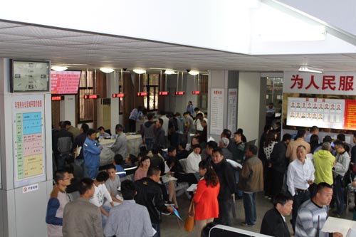 國慶長假至10月7日結束,加之國家對10月1日以后購買的1.6排量的小型汽車實行減半納稅的政策,10月8日節(jié)后一上班,車管所就迎來了國慶假期后的首個辦牌辦證高峰。截止上午10時,排隊叫號系統(tǒng)已發(fā)出201個號單,大隊院內的前后停車場和車管所各業(yè)務窗口擠滿了前來辦牌辦證的車輛和群眾。根據車管所從4S店了解到的國慶期間銷售汽車的情況看,這種辦牌辦證高峰將持續(xù)一周左右。