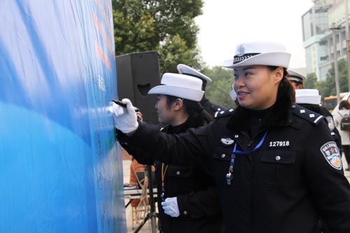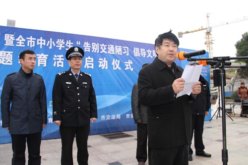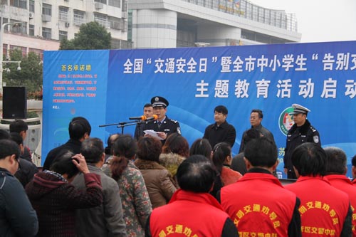 活動(dòng)首先由市公安局黨委委員、副局長(zhǎng)蔡林發(fā)表熱情揚(yáng)溢的致辭;駕駛員代表、校長(zhǎng)代表作表態(tài)發(fā)言;鼓樓中心小學(xué)的學(xué)生率先向社會(huì)發(fā)出倡議:告別交通陋習(xí),從我做起;市委宣傳部副部長(zhǎng)、市文明辦主任張余華講話并宣布啟動(dòng)儀式正式開(kāi)始。所有參會(huì)人員紛紛在“告別交通陋習(xí),從我做起”巨幅背景墻上簽名承諾,現(xiàn)場(chǎng)發(fā)放交通安全宣傳品和122宣傳畫(huà)冊(cè)。