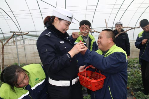 活動中,民警、輔警們騎著同心車一路馱著蘇馨家園的11位園友來到河失鎮(zhèn)石橋村草莓園,帶領園友們學摘草莓。他們時而了解草莓的生長過程、時而開展采摘比賽,園友們心情暢快,大伙兒時不時地嘗上一口新鮮的草莓。一籃籃滿載的草莓,讓這些身殘志堅的園友們體驗勞動的快樂,品嘗收獲的喜悅,感受美好的春天。