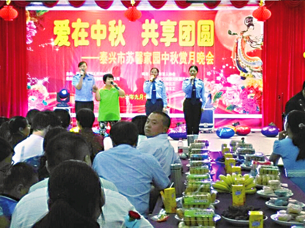中秋節(jié)前夕,在市殘疾人托養(yǎng)中心,園友們和來自市盲人協(xié)會、平安義工、安德義工、交警大隊新區(qū)中隊的青年志愿者齊聚一堂,共同舉辦了主題為“愛在中秋·共享團(tuán)圓”的中秋晚會。現(xiàn)場氣氛活躍,志愿者和蘇馨家園的園友們合作完成了獨唱、舞蹈、黃梅戲、武術(shù)等18個節(jié)目,度過了一個歡樂的中秋節(jié)。