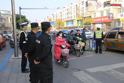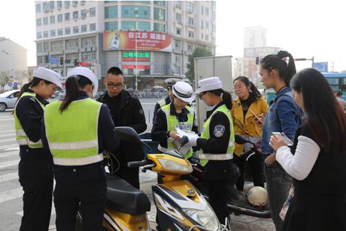 (8時整,多部門協(xié)作,聯(lián)合整治行動開始了) 為配合現(xiàn)場直播,大隊一方面整合新區(qū)、城區(qū)警力,聯(lián)合城管、巡特警、治安等相關(guān)部門,多點位開展整治行動,法制宣傳中隊全力做好協(xié)調(diào)、對接工作。另一方面大隊邀請交通志愿者開展交通安全勸導(dǎo)活動。