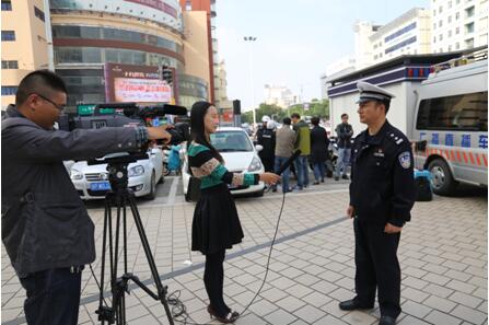 10月17日上午8時,泰興大隊聯(lián)合市電視臺、廣播電臺,開展《向交通文明靠攏----國慶中路省級文明示范創(chuàng)建整治》大型直播節(jié)目,并派出外景直播大篷車深入城區(qū)最為繁華的鼓樓路金鳳崗路口。