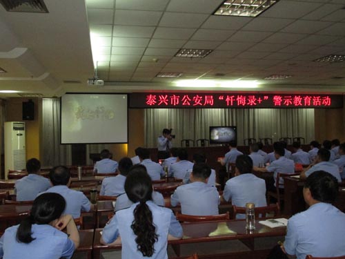 為深入推進(jìn)全市公安機(jī)關(guān)“以案為鏡”警示教育活動(dòng)工作,加大警示教育力度, 6月5日下午,泰興市公安局組織全局民警觀看了該市市紀(jì)委制作的警示教育片《懺悔錄》。通過(guò)觀看警示教育片,廣大民警感觸頗深,紛紛表示要以近年來(lái)該局發(fā)生的民警腐敗犯罪和違法犯罪為警示,引以為戒。在家的局班子成員,機(jī)關(guān)各部門主要負(fù)責(zé)人及民警代表在主會(huì)場(chǎng)觀看,交警大隊(duì)、巡特警大隊(duì)、看守所、拘留所及分局、各派出所全體人員在分會(huì)場(chǎng)收看。 |
