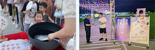 泰州泰興市委網(wǎng)信辦組織開展“泰消謠護(hù)網(wǎng)行”網(wǎng)絡(luò)辟謠宣傳活動。志愿者在夜市商圈擺攤設(shè)點,向過往群眾“兜售”網(wǎng)絡(luò)辟謠知識,并鼓勵大家積極參與網(wǎng)絡(luò)舉報,F(xiàn)場設(shè)置“謠言大作戰(zhàn)”游戲環(huán)節(jié),根據(jù)暑期旅游、教育培訓(xùn)等領(lǐng)域典型網(wǎng)絡(luò)謠言案例設(shè)計題目,讓大家通過沉浸式體驗,提高識謠辨謠能力、增強(qiáng)辟謠本領(lǐng)。靖江市委網(wǎng)信辦聯(lián)合斜橋鎮(zhèn),通過“點亮星夜 文明仲夏”文明實踐大集市開展未成年人網(wǎng)絡(luò)保護(hù)宣傳活動。“網(wǎng)絡(luò)文明 e路守護(hù)”攤位上設(shè)置的拼圖小游戲,將網(wǎng)絡(luò)舉報技巧、安全上網(wǎng)知識、文明用網(wǎng)常識等內(nèi)容融入其中,孩子們在工作人員引導(dǎo)下,從游戲互動中掌握參與網(wǎng)絡(luò)舉報、識別網(wǎng)絡(luò)詐騙、抵制網(wǎng)絡(luò)暴力、避免網(wǎng)絡(luò)沉迷的方式方法。南通啟東市委網(wǎng)信辦、海安高新區(qū)海安街道網(wǎng)信工作中心在夜市擺設(shè)網(wǎng)絡(luò)舉報和辟謠宣傳展位,并通過網(wǎng)絡(luò)安全知識“大轉(zhuǎn)盤”競答游戲,幫助群眾增強(qiáng)網(wǎng)絡(luò)舉報意識和識謠辨謠能力,呼吁大家在日常生活中規(guī)范網(wǎng)絡(luò)言行,防范網(wǎng)上不良信息和網(wǎng)絡(luò)謠言陷阱,共同參與網(wǎng)絡(luò)生態(tài)治理。 點亮夏夜 現(xiàn)場滿滿“煙火氣”