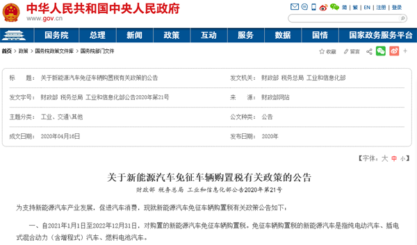 △《關(guān)于新能源汽車免征車輛購置稅有關(guān)政策的公告》。 購買新能源車的補貼也是同理。根據(jù)國家財政部、工業(yè)和信息化部、科技部、發(fā)展改革委2020年4月23日發(fā)布的《關(guān)于完善新能源汽車推廣應(yīng)用財政補貼政策的通知》,“綜合技術(shù)進步、規(guī)模效應(yīng)等因素,將新能源汽車推廣應(yīng)用財政補貼政策實施期限延長至2022年底。平緩補貼退坡力度和節(jié)奏,原則上2020 -2022年補貼標(biāo)準(zhǔn)分別在上一年基礎(chǔ)上退坡10%、20%、30%(2020年補貼標(biāo)準(zhǔn)見附件)。”也就是說,至少在2022年年底前,購買新能源車符合技術(shù)要求的均可以享受到補貼。
