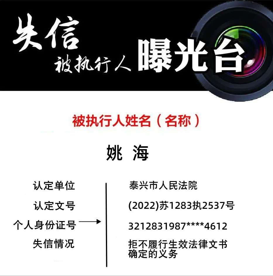 【曝光失信案例】曝光泰興這兩名失信被執(zhí)行人!