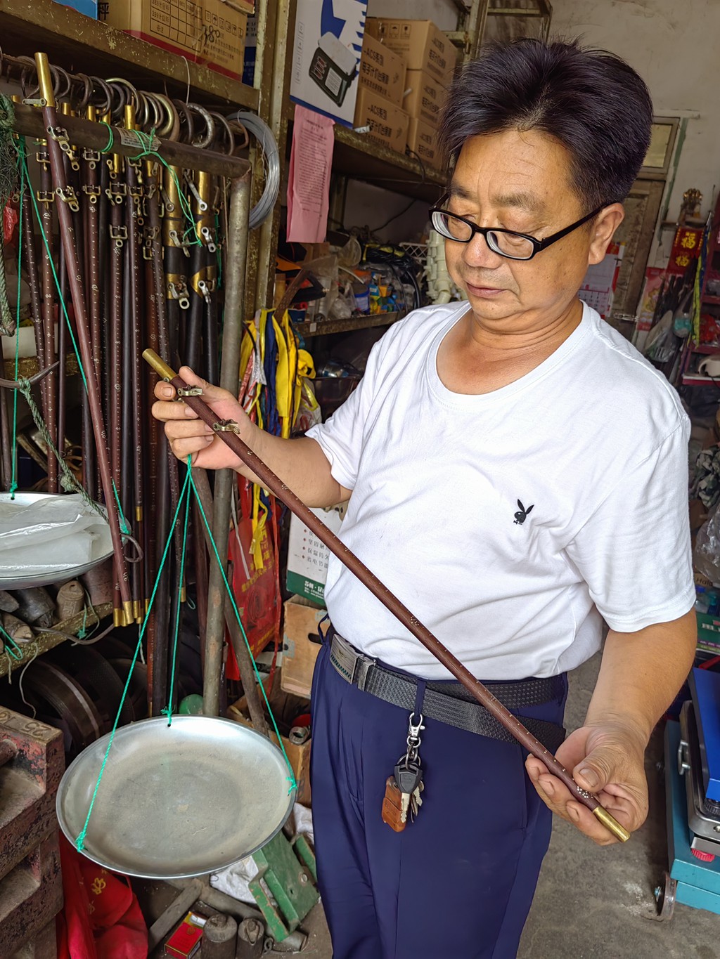 銘記師訓(xùn),做傳承匠心的手藝人。 桿秤是中國傳統(tǒng)度量衡的三大件之一,曾在商品流通中擔(dān)當(dāng)重要角色。那時(shí),“秤”是生活中的必需品,做秤也是一門世代相傳的手藝行當(dāng),規(guī)矩很大,桿秤匠對(duì)職業(yè)極為神圣虔誠,從不因操作失誤而讓秤短斤少兩。“做老實(shí)人,賣老實(shí)秤”的宗旨,凝聚著代代桿秤手藝人的匠心智慧。 陸寶平自學(xué)徒起,制作的都是十兩一斤的桿秤。他17歲開始學(xué)制秤,靠著這門手藝養(yǎng)活了家人30多年。學(xué)徒時(shí)滿師要一年,其中學(xué)習(xí)制作秤桿就要大半年。做秤是一門精細(xì)的手藝,有著選材,刨圓,到用堿水浸泡,打磨,釘秤花等多道程序。做秤選用的木桿,都是紋路細(xì)膩且木質(zhì)堅(jiān)硬的柞櫟木、紅木等上等材料。為了保證木桿不開裂,選后的材料要放在干燥處堆放兩個(gè)伏天后才能使用。木材經(jīng)鑿、刨處理后,再用細(xì)砂布沾水打磨光滑。點(diǎn)“秤星”的時(shí)候,鉆孔稍不留神就會(huì)戳到手指流血。“我曾經(jīng)五個(gè)手指都貼上了止血貼,切線的時(shí)候也被切到過手。”陸寶平說,不拋棄,不放棄,從不言敗是自己的性格,有時(shí)因一道工序失誤,會(huì)毫不猶豫從頭再做。盡管學(xué)習(xí)過程很辛苦,但他懂得嚴(yán)師出高徒的道理。制秤的每一道工序,陸寶平都爛熟于心,恪守著制秤行業(yè)的老規(guī)矩,一直銘記著“準(zhǔn)確公道,分毫不差”的師訓(xùn)。 初心不改,做“良心秤”的生意人。 “制作桿秤的時(shí)候要憑良心,人在做天在看,少一兩就會(huì)少福減壽的。”制秤工藝繁瑣復(fù)雜,從選材,到打磨、包秤頭、安秤刀、定秤心、分斤兩、定盤星,做秤如做人,陸寶平從不敢缺斤少兩。有一回,有個(gè)外地人找他做“陰陽秤”,也就是10斤錢只給8斤菜。這是明擺著的昧著良心,他死活也不肯做。后來對(duì)方油然而生敬意,逢人便夸陸寶平正直。從此,他做“良心秤”的美名一直流傳了下來。 要想制作一把好的桿秤,除了桿子要選木質(zhì)細(xì)膩的上等材料,定盤星的確認(rèn)考量著匠人的良心,失之毫厘往往謬之千里。在定完定盤星后,用兩腳規(guī)分別畫出各個(gè)重量的刻度,打眼后再往里面填充鉛絲或銅絲。陸寶平說,“這只能用黃色的或者銀色的,不能用黑色的。行有行規(guī),做什么生意都要憑著良心,絕對(duì)不能黑心。”附近鄰居們?cè)趧e處買的食物有顧慮,都會(huì)來陸寶平店里過一下秤,只要陸師傅說一句“準(zhǔn)的”,大家才放心地離開。 誠信一生,做守住快樂的傳承人。 八十年代改革開放后,市場(chǎng)貿(mào)易蓬勃興起,小商小販如雨后春筍。生意人喜歡用攜帶方便的桿秤,小小的桿秤拉動(dòng)了經(jīng)濟(jì)的發(fā)展,需求量也隨著改革的深入熱了起來。“做人要厚道,做秤講誠信。”這是陸寶平幾十年來做桿秤的原則。他常說,生意好也不能忘本,做了一輩子的“良心秤”,沒有發(fā)財(cái),也沒有落魄,在街仿鄰居心中都是免檢產(chǎn)品,老主顧也會(huì)一直找上門,這份快樂成為自己一生中最大的幸福。 進(jìn)入九十年代后,因?yàn)殡娮映臃Q重、算賬一體化,商戶使用起來更為方便,電子秤市場(chǎng)隨即火熱起來,手工秤慢慢成為符號(hào)將被淘汰,生意每況愈下賺不了多少錢,但陸寶平卻舍不得放棄。為了維持生計(jì),他在秤店里不得不兼營起電子秤。在他看來,桿秤做出的生意更像是人與人之間的情感交流和信任,電子秤比不上木桿秤有人情味兒。因?yàn)橘I賣中,賣家爽朗一笑“您看,秤高高的!”買家看著那高高翹起的秤桿,滿心歡喜就把錢付了。 風(fēng)雨人生路,桿秤伴君行。“生意走下坡路不要緊,做人卻不能忘本忘根。”陸寶平說,自己最大的愛好就是沒事做做秤,現(xiàn)在不為謀生,只想守住屬于自己的那份快樂,條件允許將來就到學(xué)校去,給孩子們講講“良心秤”的歷史,將“誠實(shí)守信”做人如秤的老規(guī)矩傳承下去。 |