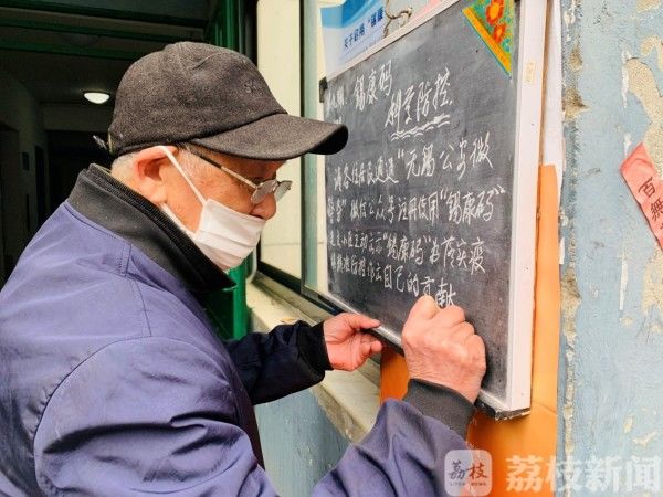 得知村里要召集志愿者,石紀(jì)金第一時間報名,受到勸阻后他反問,作為老黨員,我不帶頭誰帶頭!我年紀(jì)大了,干不了防控一線的體力活,難道搬個板凳在卡口值守都干不了嗎? 在石紀(jì)金的堅持下,他披上紅馬甲,成為了一名疫情防控志愿者。“現(xiàn)在疫情形勢嚴(yán)峻,我要做點(diǎn)力所能及的事,以后不管什么時候,只要黨和人民有需要,我總是隨叫隨到的!”這就是這位93歲老黨員的初心。 在無錫市新吳區(qū),88歲的周英榮也想報名一線志愿者,可是社區(qū)不讓,于是他成為了社區(qū)草根宣講隊成員:在樓道門口放了一個小黑板,把專家講的防疫知識、疫情的形勢、提醒的注意點(diǎn)寫上,讓大家進(jìn)出樓棟都能看見。