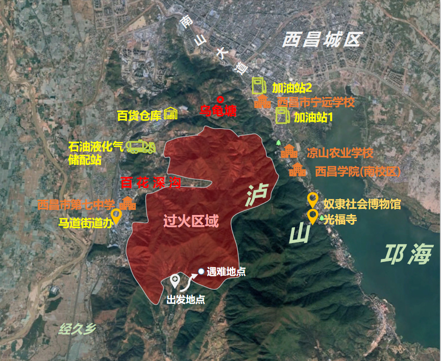 寧南專業(yè)打火隊(duì)行進(jìn)路線(西昌市供圖) 央廣網(wǎng)涼山州3月31日消息(記者劉濤 韓民權(quán))今天(31日)下午五點(diǎn),四川省西昌市舉行新聞發(fā)布會(huì),通報(bào)了在這次火災(zāi)中犧牲的19名及受傷的3名勇士相關(guān)情況。 西昌市委書(shū)記李俊介紹,3月30日19時(shí)30分,寧南縣寧遠(yuǎn)鎮(zhèn)專業(yè)撲火隊(duì)接到寧南縣林草局前往西昌市支援命令后,于當(dāng)日20時(shí)20分,由該專業(yè)撲火隊(duì)正在值守備勤的一班、五班共計(jì)22人從寧南縣出發(fā)馳援西昌瀘山火場(chǎng),于22時(shí)40分許到達(dá)火場(chǎng)所在地西昌市經(jīng)久鄉(xiāng)蔡家溝水庫(kù),于23時(shí)10分許在當(dāng)?shù)匾幻驅(qū)ьI(lǐng)下從蔡家溝水庫(kù)上山前往集結(jié)地進(jìn)行撲火作業(yè)。據(jù)幸存者表述,隊(duì)伍于今天(31日)凌晨1時(shí)20分許突遇風(fēng)向突變,致現(xiàn)場(chǎng)18名撲火隊(duì)員和1名向?qū)奚?名撲火隊(duì)員負(fù)傷。 目前,3名重傷人員在西昌市519醫(yī)院正在積極治療,生命體征穩(wěn)定。19具犧牲人員遺體已于今天14時(shí)30分全部護(hù)送至西昌市殯儀館。西昌市已按照一名犧牲人員一個(gè)服務(wù)小組的要求成立了專門工作組,抽調(diào)了醫(yī)護(hù)和心理輔導(dǎo)人員組成服務(wù)小組為犧牲人員家屬提供全方位服務(wù)。相關(guān)單位已為19名犧牲的救火英雄啟動(dòng)烈士申報(bào)程序。后續(xù)優(yōu)撫政策正在制定中。 李俊表示,將科學(xué)施策,全力撲救,加緊調(diào)查起火原因及事故原因,全力保障人民群眾的生命財(cái)產(chǎn)安全。 |