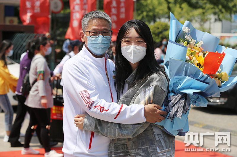 虞洪和女兒擁抱(央廣網(wǎng)記者 魏煒 攝)