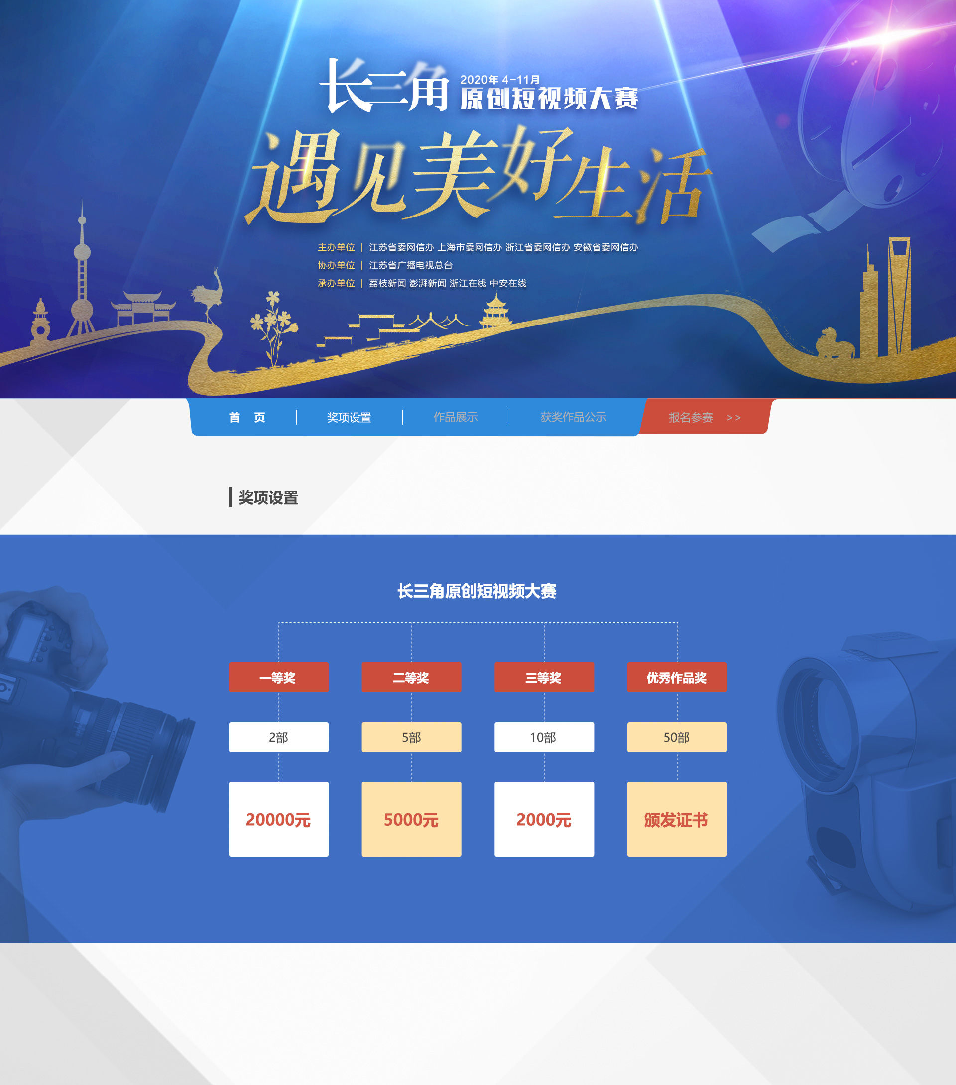 獎項設立豐富且權(quán)威!機會屬于你! 參賽方式包容并蓄,不拘一格邀佳作!大賽設立“遇見美好生活”——主單元,與“小康”模樣——特別單元,橫(屏)豎(屏)皆可,甜咸不忌。關于我們所處的這個美好時代、身邊的美好生活,發(fā)現(xiàn)、記錄或是講述,敬請點燃你的創(chuàng)作小宇宙,不吝賜教。 劃重點!關于本次大賽你需要知道的一切—— 【Q:“遇見美好生活”長三角原創(chuàng)短視頻大賽是什么?】 這是一個集權(quán)威性、含金量、影響力于一身的專業(yè)性大獎賽!它將以解讀、詮釋全面小康的深刻內(nèi)涵為主題,面向長三角乃至全國視頻愛好者和網(wǎng)友發(fā)出創(chuàng)作邀約。 【Q:誰可以參賽?】 熱愛短片創(chuàng)作的任何個人和集體。 【Q:大賽主題是什么?】 “民亦勞止,汔可小康。”綺麗愿景穿越千年,在我們身處的這個時代,照進現(xiàn)實。今年的大賽主題是“遇見美好生活”,旨在透過不同創(chuàng)作主體的多方視角,鼓勵綜合運用多種視頻表現(xiàn)手法和呈現(xiàn)方式,點贊長三角地區(qū)小康社會建設取得的豐碩成果,聚焦人民幸福安康的美好生活。 【Q:參賽作品分幾類?】 1、主單元——“遇見美好生活” 。1)微電影 。2)微紀錄片 (3)公益短片 。4)動畫短片 2、特別單元——“小康”模樣 【Q:參賽作品要求?】 1、內(nèi)容題材要求 主單元——“遇見美好生活”:透過城鄉(xiāng)建設、行業(yè)發(fā)展、家庭變遷、個人成長等不同維度,聚焦長三角地區(qū)全面小康的生動實踐,用光影描繪美好生活。題材不限,形式不限。 特別單元——“小康”模樣:以“微訪談”、隨手拍的形式,展現(xiàn)不同群體心中的“小康”模樣。視頻需為豎屏形態(tài)。 參賽作品必須符合國家法律、法規(guī)和版權(quán)有關規(guī)定,無色情、暴力、血腥等不良內(nèi)容。要求題材好、創(chuàng)意新,契合主題、情節(jié)完整。 2、時長要求 所有作品時長只需3分鐘 無論是報送主單元或是特別單元,都不要超過3分鐘哦。 3、格式要求 參賽作品以mp4為主,avi、flv、mpg、wmv為備選格式。特別單元參賽作品需為豎屏短視頻。 4、上傳要求 參賽作品大小控制在300M以內(nèi),如超過建議壓縮后上傳。 5、版權(quán)要求 參賽作品必須由參賽者本人(或單位)原創(chuàng),嚴禁剽竊、抄襲,參賽者應擁有作品的著作權(quán)。主辦方對全部參賽作品具有免費使用權(quán)。主辦單位不承擔包括(但不限于)肖像權(quán)、名譽權(quán)、隱私權(quán)、著作權(quán)、商標權(quán)等糾紛而產(chǎn)生的法律責任,如出現(xiàn)上述糾紛,主辦方保留取消其參賽資格及追回獎項的權(quán)利。 6、創(chuàng)作時限 參賽作品必須是網(wǎng)絡首發(fā),并且是2020年1月1日起創(chuàng)作的短片。 【Q:獎項設置】