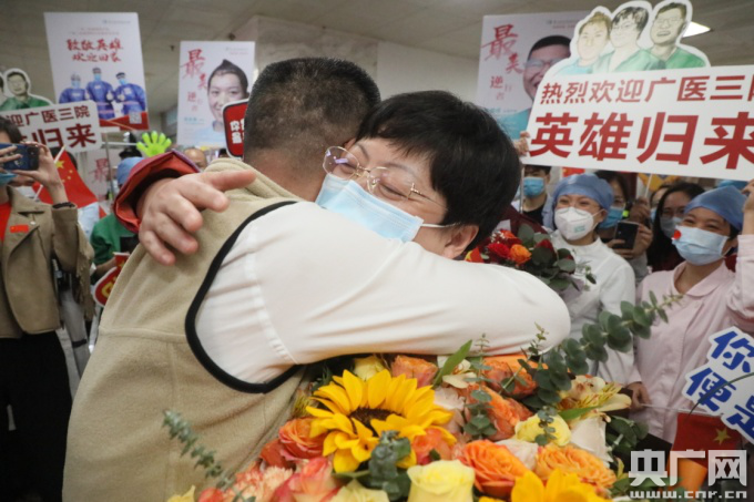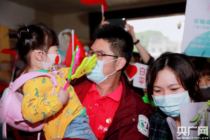 廣州援鄂醫(yī)生休整結(jié)束返院(央廣網(wǎng)發(fā) 院方供圖) “以后,也請(qǐng)讓我好好照顧你” 離家兩個(gè)多月,家人最是牽掛與擔(dān)憂,如今團(tuán)聚,那份幸福難以言表。