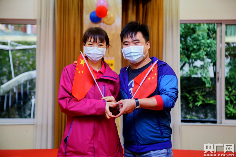 廣醫(yī)三院援鄂醫(yī)療隊(duì)隊(duì)員段業(yè)英(左)和男友(央廣網(wǎng)發(fā) 院方供圖) “我所能夠做的,就是在她抗疫期間,用我全部的空閑時(shí)間陪伴她!倍螛I(yè)英的男友現(xiàn)場深情表白:“以后,也請(qǐng)讓我好好照顧你、陪伴你!” |