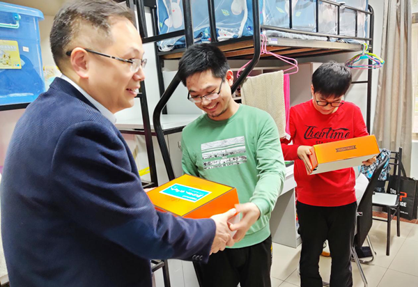 新華網(wǎng)南京5月4日電(龐雪。┮环莘菅b著蘋果和橙子的水果禮盒,寓意“蘋”安喜樂,前“橙”似錦……五一假期,南京航空航天大學(xué)校園是“水果味”的。據(jù)了解,因新冠肺炎疫情防控需要,五一假期校園實(shí)行封閉式管理,為了讓同學(xué)們度過一個(gè)暖心的假期,老師們走訪學(xué)生宿舍,看望返校同學(xué),并為4700余名全體返校生和后勤阿姨準(zhǔn)備了甜蜜水果禮盒,禮盒上貼著專屬的祝福語。