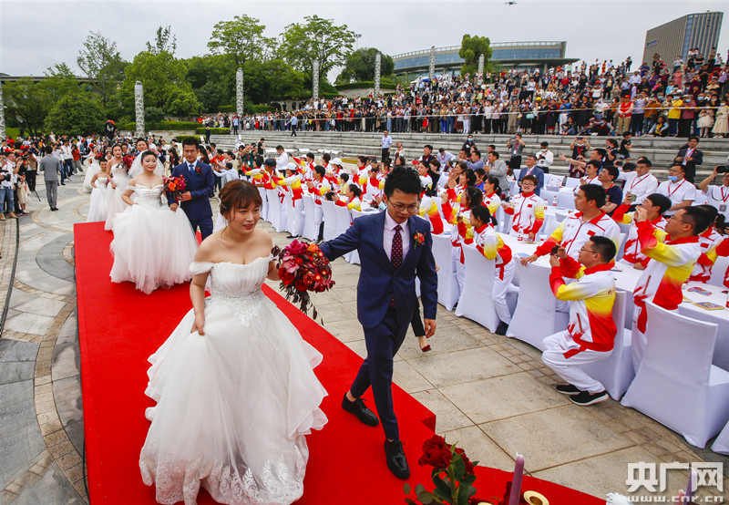 浙江省淳安縣今天為戰(zhàn)“疫”情侶代表舉辦空中婚禮(央廣網(wǎng)發(fā) 王建才 攝) 央廣網(wǎng)杭州5月10日消息(記者陳瑜艷 通訊員方鶴陽 朱海亮 劉雪姣)為了抗擊疫情,許多醫(yī)護人員主動推遲了自已的婚期,今天上午,“天使歸來 愛滿人間”空中婚禮公益活動在杭州市淳安縣舉行,來自全省醫(yī)療系統(tǒng)的六對新人在千島湖舉幸福牽手。
