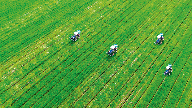 劉亢?凌軍輝?陳剛 ●雖然更多以經濟大省、工業(yè)大省的“名片”蜚聲于外,江蘇卻始終保持著農業(yè)大省、糧食大省地位。以全國3.8%的耕地確保了占全國近6%人口的糧食安全 ●江蘇糧食產量多年保持在700億斤以上的背后,是多年堅持藏糧于地、藏糧于技,全面提升糧食生產綜合能力 一望無際的田野上,隨風泛起層層麥浪。在江蘇產糧第一大縣泰州興化,田間的麥子已進入灌漿成熟期,麥收時節(jié)漸近。 多年來,江蘇除了經濟大省的“名片”外,還保持著農業(yè)大省、糧食大省的地位,以全國3.8%的耕地生產5.5%的糧食,確保了占全國近6%人口的糧食安全。 江蘇高度重視糧食生產。《瞭望》新聞周刊記者采訪了解到,江蘇糧食產量多年保持在700億斤以上,創(chuàng)造了總量平衡、口糧自給、調出有余的成績。據江蘇省農業(yè)農村廳統(tǒng)計,2019年江蘇糧食總產量居全國第七、平均畝產位列第四。這背后,是江蘇多年來堅持藏糧于地、藏糧于技,筑牢糧食生產基礎,全面提升糧食生產綜合能力。 防疫情保豐收“米袋子”有保障 春爭日,夏爭時!斑@個苗情圖對各區(qū)域苗情智能化分類分級,一目了然!币咔槠陂g,泰州興化市農技推廣中心副站長陳春生沒有像往年一樣穿梭于田間地頭,而是通過南京農業(yè)大學智慧農業(yè)研究院設計的小程序“坐地日行八萬里”,依靠衛(wèi)星遙感、無人機、田間物聯(lián)網傳感器等獲取苗情相關技術數據。 在興化、射陽等多個江蘇產糧大縣,無人機因減少人員接觸、效率高等優(yōu)勢,成為“植保神器”。在南通、揚州、泰州等地,部分包田的外地種糧大戶因疫情未能及時返回,通過遠程委托代耕代種,實現(xiàn)了“人未到,田已耕”。 春耕備耕期間,江蘇日均投入農機裝備10萬臺套以上。從無人機田間管理、機械化施肥,到“網絡備耕”“綠色通道”保農資運輸,有條不紊保障糧食生產!跋募Z豐收的基礎很好!苯谙锣l(xiāng)調研指導赤霉病等病蟲害防治工作的江蘇省農業(yè)農村廳總農藝師唐明珍說。 一頭連著周邊優(yōu)質糧食種植基地,一頭面向上海、蘇南等地餐桌。在射陽大米產業(yè)園,日產300噸的兩條生產線正滿負荷生產品牌大米——射陽大米!鞍瓷虾J袌250萬噸的年銷量粗略計算,每四碗米飯中就有近一碗來自射陽。”射陽縣農業(yè)農村局副局長陳以良說。 江蘇省農業(yè)農村廳種植業(yè)處處長馬德云說,按全省約8000萬常住人口、人均年消費800斤計算,在口糧自給的基礎上,尚有數十億斤余糧。 既保安全,又提質效,“種出好吃的大米”,是江蘇糧食生產的追求。在江蘇面積最大、糧食總產占全省2成的鹽城,市農業(yè)農村局副局長滕友仁說,當地根據三大農區(qū)不同稟賦,優(yōu)化品種、推廣綠色生產,優(yōu)良食味稻米占比過6成,專用麥規(guī)模產業(yè)化基地比例過半。 在興化市,創(chuàng)建糧食高產示范片被創(chuàng)建綠色高質高效示范片替代,已建成40多個共20多萬畝示范片,推廣優(yōu)質食味稻米品種過百萬畝,占比約9成。江蘇全省優(yōu)良食味稻米面積超過1200萬畝,耕地輪作休耕約110萬畝,稻田綜合種養(yǎng)150多萬畝。