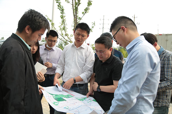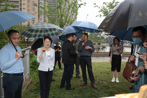 麒麟科創(chuàng)園工作人員介紹河道整改計劃 當(dāng)天下午實地暗訪,找準(zhǔn)污水排放原因、敲實責(zé)任單位 污水從何而來,是工業(yè)廢水還是生活污水?附近居民區(qū)雨污分流改造是否到位?污水治理多年未決,痛點究竟在哪里?……圍繞這一系列問題,5月11日下午2點,市人大常委會環(huán)資城建委、農(nóng)委和市水升辦工作人員“直撲”現(xiàn)場,實地暗訪。 沿著有軌電車1號線北灣營街站往東北方向望去,春夏之交的河道岸坡綠草如茵,令人賞心悅目。但行至運糧河?xùn)|路與北灣營街交叉口時,一股刺鼻的異味驟然出現(xiàn)。從上往下看,不僅水面上飄浮著一些垃圾,還有一股渾濁的污水也正通過排水口緩緩淌進河道。 經(jīng)過1個半小時的現(xiàn)場摸排,暗訪小組對污水排放點的污染情況、形成原因、責(zé)任單位進行預(yù)判,當(dāng)場確定了“由市人大常委會牽頭,市住建委、水升辦、水務(wù)局等多部門參加,麒麟科創(chuàng)園管委會負(fù)責(zé)承辦”的辦公方案。次日一早,市人大常委會主任龍翔要求“商有關(guān)部門、板塊妥善解決”。 “五部門+3名人大代表”冒雨調(diào)研,現(xiàn)場辦公會確定整改時間表 14日下午,暴雨突襲南京。市人大常委會副秘書長、環(huán)資城建委主任陳雷帶隊,市人大常委會農(nóng)委和市建委、水升辦、水務(wù)局、麒麟科創(chuàng)園管委會負(fù)責(zé)人,以及3名相關(guān)領(lǐng)域的市人大代表冒雨趕赴現(xiàn)場,察看污水排放情況。