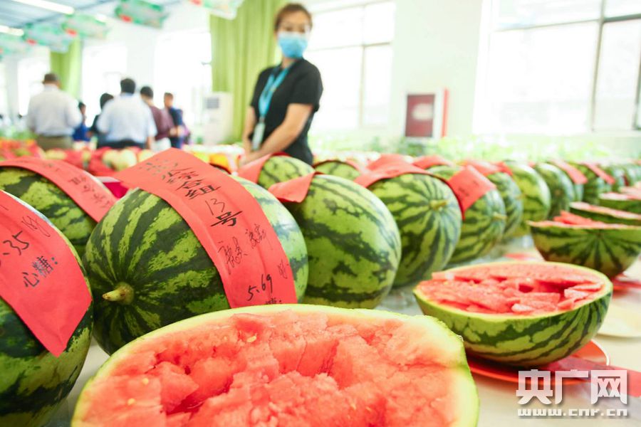 第32屆全國(guó)西甜瓜擂臺(tái)賽現(xiàn)場(chǎng)(央廣網(wǎng)記者 劉天思 攝) 央廣網(wǎng)北京5月28日消息(記者劉天思)5月28日,第32屆北京大興西瓜節(jié)開(kāi)幕,本屆西瓜節(jié)開(kāi)展首次覆蓋大興全域、線上全景直播,為市民獻(xiàn)上新鮮、熱鬧、參與互動(dòng)感強(qiáng)的疫情常態(tài)化下的文旅大餐。 “13小時(shí)”全景直播點(diǎn)燃熱度。5月28日早8點(diǎn)至晚9點(diǎn)。連續(xù)13個(gè)小時(shí)在快手平臺(tái)的全景直播,是北京市大興區(qū)首次以直播形式全方位立體展示西瓜盛會(huì),該直播由12名主持人分別親身走訪大興國(guó)際機(jī)場(chǎng)、永興河濕地公園、榆垡進(jìn)京檢查站、世界月季主題園、生物醫(yī)藥產(chǎn)業(yè)基地(以嶺藥業(yè))、新媒體產(chǎn)業(yè)基地(小笨鳥(niǎo))、社區(qū)防控點(diǎn)(高米店街道茉莉社區(qū))、大興區(qū)疾控中心和薈聚商業(yè)中心,感受大興的日新月異,共享大興人民的幸福生活;晚6點(diǎn)至9點(diǎn)的時(shí)間段,由北京廣播電臺(tái)主持人直播帶貨,特別是其中1個(gè)小時(shí)的扶貧產(chǎn)品推介,在展示大興特色產(chǎn)品以及對(duì)口幫扶地區(qū)的特色產(chǎn)品之際,更為廣大消費(fèi)者帶去了實(shí)惠。13小時(shí)的直播中還穿插圍繞創(chuàng)城知識(shí)、垃圾分類的線上競(jìng)答,有獎(jiǎng)競(jìng)答贏取大興西瓜,進(jìn)一步增加線上互動(dòng)體驗(yàn)感和參與度。
