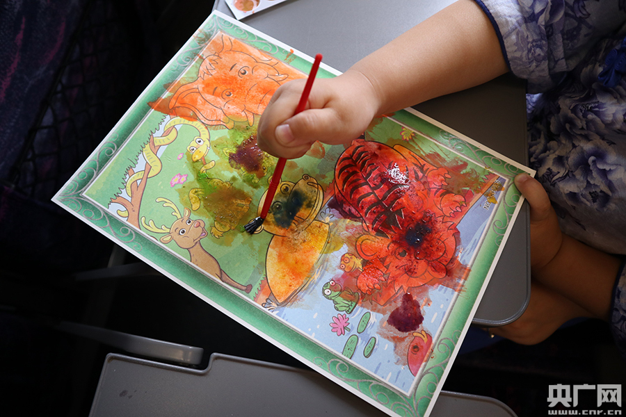 小旅客領(lǐng)到自己的“六一”小禮物:填色板(央廣網(wǎng)發(fā) 通訊員鐘潔 攝) 央廣網(wǎng)重慶6月1日消息(記者趙聰聰 通訊員鐘潔)六一前夕,重慶客運段青年志愿者“小橙子”上車為旅途中的小朋友過國際六一兒童節(jié)。青年志愿者“小橙子”帶來了拼圖,畫板、兒童讀物和糖果,為D1833次各車廂的小朋友逐車送去六一兒童節(jié)的祝福。小朋友們對動車上突如其來的驚喜顯得興奮不已,家長們紛紛拿出手機拍下這一歡樂的場景,表示沒想到能到動車上參與這樣的活動,體驗不一樣的兒童節(jié)。 |