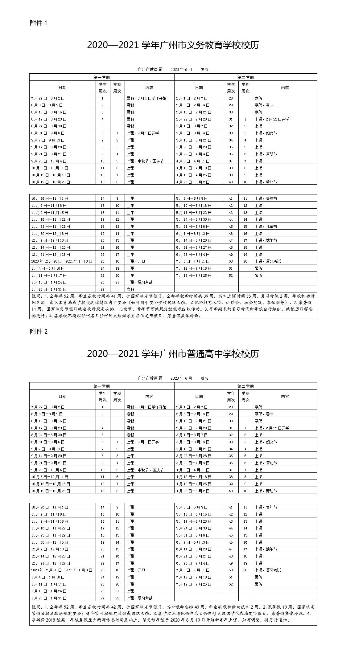 央廣網(wǎng)廣州6月9日消息(記者鄭澍)6月8日,廣州市教育局最新公布了《2020—2021學(xué)年廣州市義務(wù)教育學(xué)校校歷》。根據(jù)校歷安排,全市小學(xué)、初中、高中放暑假從2020年7月27日開始,8月31日結(jié)束,共36天。9月1日正式開學(xué)上課。其中,廣州市教育局特別說明,在確保2018級高二年級暑假至少兩周休息時(shí)間基礎(chǔ)上,暫定該年級于2020年8月10日開始新學(xué)年上課,如有調(diào)整,將另行通知。 小學(xué)、初中放寒假從2021年1月25日開始,2月21日結(jié)束,共28天。2月22日正式開學(xué)上課。高中放寒假從2月1日開始,2月21日結(jié)束,共21天。2月22日正式開學(xué)上課。