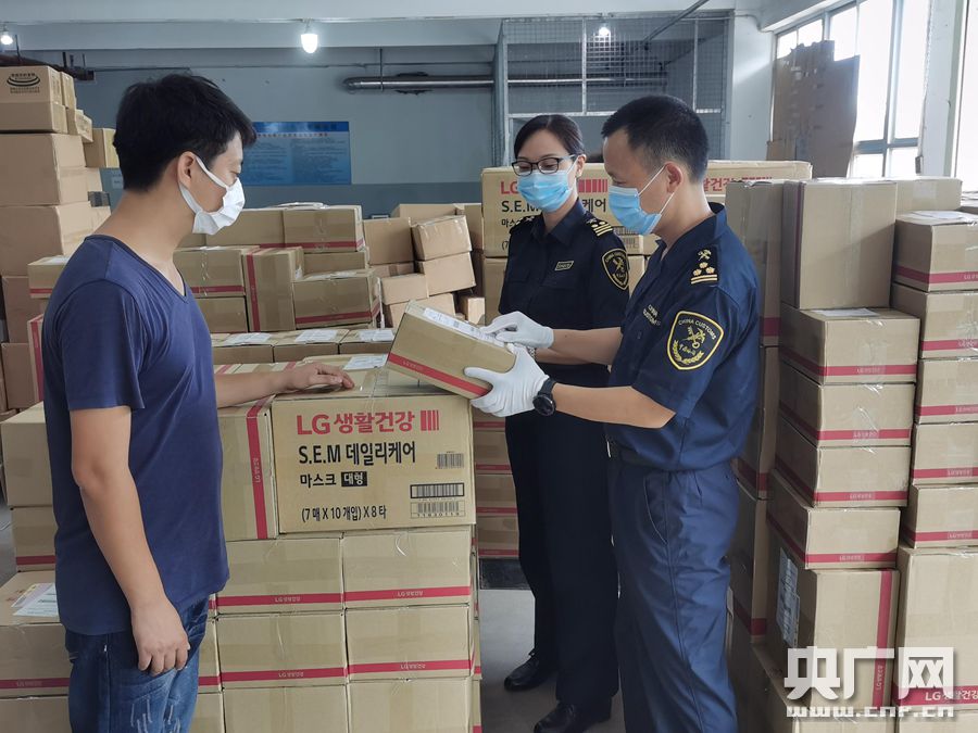 ![]() 廣州海關(guān)所屬?gòu)V州白云機(jī)場(chǎng)海關(guān)關(guān)員在跨境電商倉(cāng)庫(kù)進(jìn)行巡倉(cāng)監(jiān)管(央廣網(wǎng)發(fā) 海關(guān)供圖)