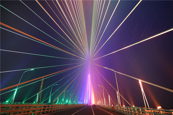 重點(diǎn)工程進(jìn)行時(shí):滬通長江大橋首次系統(tǒng)調(diào)試燈光