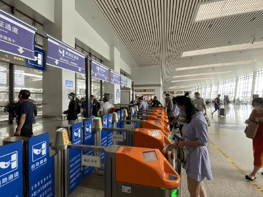 6月27日,端午小長假運輸?shù)谒奶,鐵路南京站為應對返程客流高峰,當天增開臨客22.5對(南京站5.5對,南京南站17對),其中增開上海、杭州、蕪湖、徐州、連云港、南通、杭州、寧波等方向的始發(fā)臨客(含高峰)15列,具體車次為:南京-徐州D9578次、南京-連云港D9566次、南京-南通D9492次、南京-上海虹橋G9261次、南京-上海G9265次、南京-南通D9546次、南京-南通D9496次、南京-上海G9267次、南京南-蕪湖D9511次、南京南-蕪湖D9513次、南京南-杭州東G9485次、南京南-蕪湖D9515次、南京南-蕪湖D9517次、南京南-寧波G9487次、南京南-蕪湖D9519次。當日共開行旅客列車418對,其中動車組列車347對,占開車總量的83.01%。