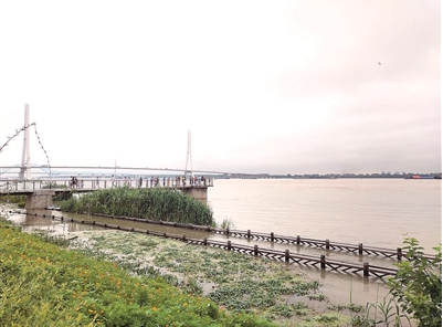 南京魚嘴濕地公園,游覽棧道被長江水淹沒。吳 瓊攝