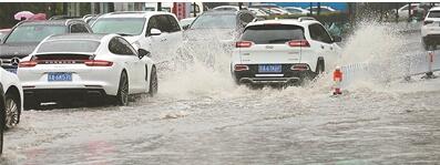 昨日,南京街頭大雨傾盆,部分路段出現(xiàn)積水。新華日報記者 宋寧攝