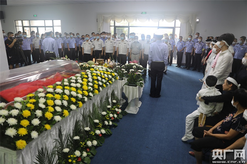 7月4日,戰(zhàn)友、親人送別李秀毅(央廣網(wǎng)發(fā) 警方供圖) “明天期末考試完,爸爸過來接你!边@是李秀毅犧牲前,踏出家門時(shí),對(duì)兒子說的最后一句話。6月29日上午,到了約定的時(shí)間,李秀毅卻遲遲沒有出現(xiàn)。妻子、同事?lián)艽蛄藬?shù)十個(gè)電話,始終沒有人接聽。當(dāng)同事們趕到宿舍時(shí),發(fā)現(xiàn)他躺在床上,安靜地就像睡熟了一樣,再也沒能醒來。 他的同事、廈門市公安局同安分局交警大隊(duì)新民中隊(duì)民警簡(jiǎn)順利回憶說,在此之前,他已在工作崗位上堅(jiān)守了近48小時(shí)。簡(jiǎn)順利說:“那天可能到晚上11點(diǎn)左右,他把工作布置完,他自己也特別疲勞,特別累,后來就洗澡去睡覺了。到第二天,它房間的門是稍微掩著的,我們協(xié)警把它推開的時(shí)候,看他就趴在那里,后來去摸一下,身體有點(diǎn)冰涼,趕快跟領(lǐng)導(dǎo)報(bào)告,打電話叫120過來……” 端午節(jié)景區(qū)安保、汽車站防疫執(zhí)勤、摩托車專項(xiàng)整治、酒醉駕設(shè)卡盤查……在回宿舍休息之前的48小時(shí)里,他連續(xù)工作,查獲各類交通違法行為44起。而這,只是他從警25年來日常工作中的一個(gè)縮影。