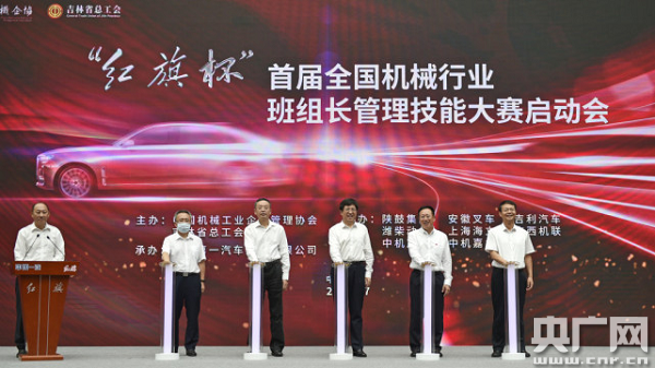 “紅旗杯”首屆全國(guó)機(jī)械行業(yè)班組長(zhǎng)管理技能大賽啟動(dòng)儀式(央廣網(wǎng)記者 劉源源 攝) 記者注意到,這次大賽是全國(guó)機(jī)械行業(yè)班組長(zhǎng)首次同臺(tái)競(jìng)技,為廣大班組長(zhǎng)提供了展示才能、交流經(jīng)驗(yàn)、切磋技藝的寶貴機(jī)會(huì)。大賽通過(guò)中國(guó)機(jī)械工業(yè)互聯(lián)應(yīng)用服務(wù)平臺(tái)以及中國(guó)機(jī)械工業(yè)現(xiàn)代化企業(yè)管理示范基地,線上線下同步展開(kāi),分為預(yù)選賽、復(fù)賽、決賽三個(gè)階段。預(yù)選賽積分綜合排名前2000名進(jìn)入復(fù)賽,復(fù)賽成績(jī)綜合排名前200名選手進(jìn)入決賽。決賽現(xiàn)場(chǎng)設(shè)在中國(guó)一汽,賽程包括理論考試和實(shí)操模擬測(cè)試等。為表彰先進(jìn)、弘揚(yáng)工匠精神,大賽還設(shè)個(gè)人獎(jiǎng)和組織獎(jiǎng)。個(gè)人獲獎(jiǎng)選手將授予“機(jī)械行業(yè)優(yōu)秀班組長(zhǎng)”稱(chēng)號(hào),并給予物質(zhì)獎(jiǎng)勵(lì)。大賽整體設(shè)計(jì)上,中國(guó)一汽貫徹建設(shè)知識(shí)型、技能型勞動(dòng)者大軍,弘揚(yáng)勞模精神和工匠精神的總體要求,緊緊圍繞企業(yè)末端管理“夯基固本”,著力培養(yǎng)“精生產(chǎn)、善管理、懂經(jīng)營(yíng)”的高素質(zhì)復(fù)合型班組長(zhǎng)隊(duì)伍。 一汽集團(tuán)黨委副書(shū)記秦?zé)鞅硎,一汽將以本屆“紅旗杯”首屆全國(guó)機(jī)械行業(yè)班組長(zhǎng)管理技能大賽為契機(jī),不斷提升班組長(zhǎng)管理技能和水平,培養(yǎng)造就更多的班組長(zhǎng)管理精英,繼續(xù)加強(qiáng)與全國(guó)兄弟企業(yè)的密切合作,共同為促進(jìn)中國(guó)機(jī)械行業(yè)高質(zhì)量發(fā)展作出應(yīng)有貢獻(xiàn)。