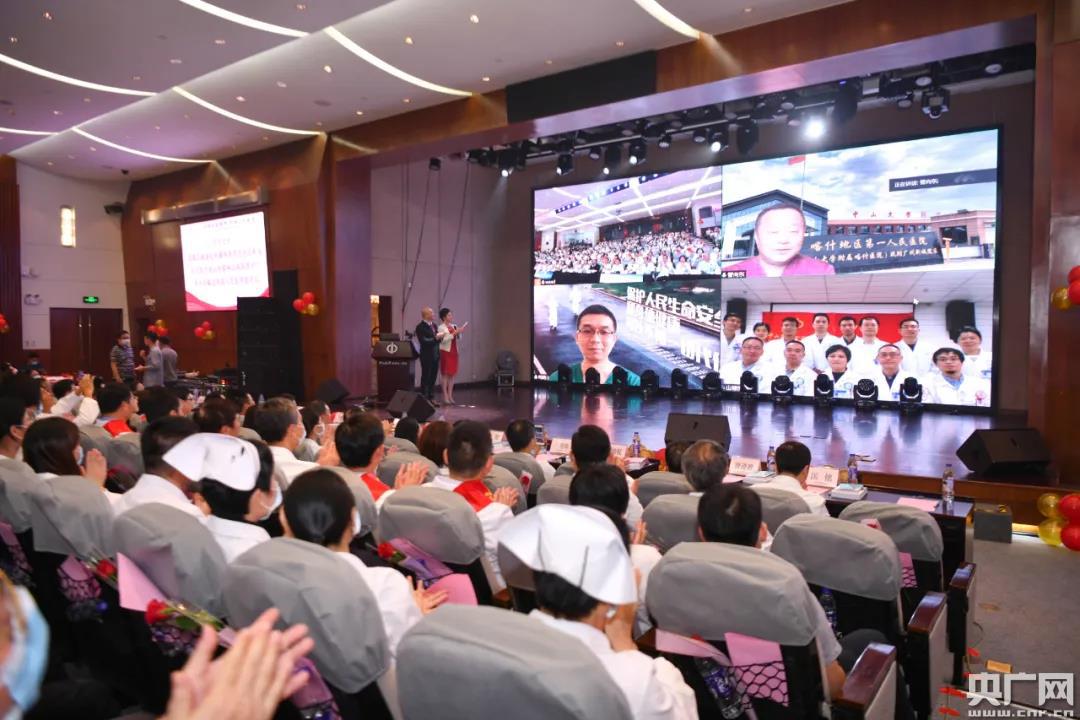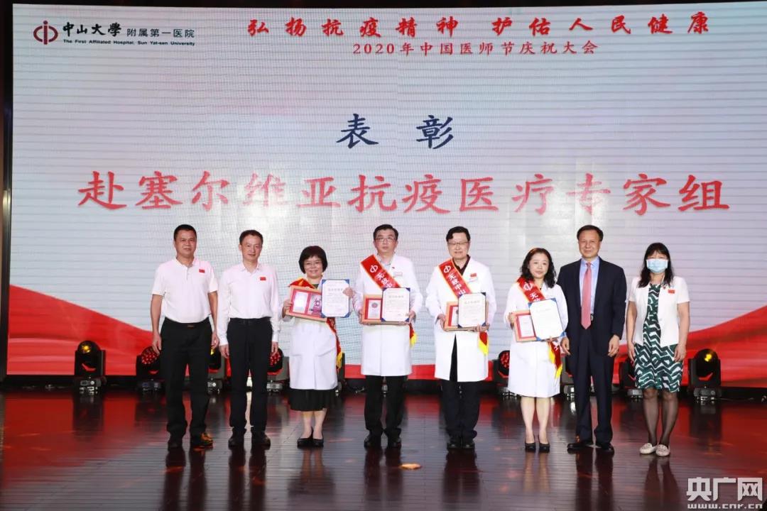 央廣網(wǎng)廣州8月20日消息(記者鄭澍)8月19日下午,第三個(gè)中國(guó)醫(yī)師節(jié),中山大學(xué)附屬第一醫(yī)院舉辦“弘揚(yáng)抗疫精神,護(hù)佑人民健康”醫(yī)師節(jié)慶祝大會(huì),向每一位醫(yī)師表達(dá)祝福和敬意。 △廣東省衛(wèi)生健康委主任、黨組書記段宇飛致辭(央廣網(wǎng)發(fā) 中山一院供圖) 廣東省衛(wèi)生健康委主任、黨組書記段宇飛出席大會(huì)并致辭。段宇飛表示,在今年抗擊新冠肺炎疫情的戰(zhàn)斗中,中山一院人不畏艱險(xiǎn)、不辱使命,以醫(yī)病醫(yī)身醫(yī)心之仁術(shù),救人救國(guó)救世之情懷,身體力行地踐行了“人民至上、生命至上”的錚錚誓言,展現(xiàn)了新時(shí)代醫(yī)務(wù)工作者的良好形象、詮釋了新時(shí)期衛(wèi)生健康職業(yè)精神,出色完成了黨中央國(guó)務(wù)院和省委省政府交付的重任,譜寫了壯麗的篇章! 在這個(gè)屬于醫(yī)生的節(jié)日里,中華醫(yī)學(xué)會(huì)重癥醫(yī)學(xué)分會(huì)主任委員、中山一院重癥醫(yī)學(xué)科主任管向東教授,重癥醫(yī)學(xué)科司向醫(yī)生、張寧護(hù)士仍堅(jiān)守在新疆抗疫一線,檢驗(yàn)科郭鵬豪、余學(xué)高兩位隊(duì)員正在幫助香港開展抗疫工作,20多位醫(yī)療隊(duì)員在西藏、新疆和廣東封開、惠東開展對(duì)口幫扶。 △現(xiàn)場(chǎng)連線援疆抗疫隊(duì)員管向東、司向以及援邊壩縣人民醫(yī)院醫(yī)療隊(duì)員(央廣網(wǎng)發(fā) 中山一院供圖) 大會(huì)現(xiàn)場(chǎng)連線了援疆抗疫隊(duì)員管向東、司向以及援邊壩縣人民醫(yī)院醫(yī)療隊(duì)員。管向東說,從武漢到黑龍江再到新疆,感受到了國(guó)家的強(qiáng)大力量,表示將不辱使命、堅(jiān)決完成任務(wù)。 △中國(guó)赴塞爾維亞抗疫醫(yī)療專家組受表彰(央廣網(wǎng)發(fā) 中山一院供圖) 面對(duì)人類的共同敵人新冠病毒,中山一院派出了2批5名專家作為中國(guó)赴塞爾維亞抗疫醫(yī)療專家組成員幫助塞爾維亞抗擊疫情,書寫了中塞鐵桿情誼的佳話。 大會(huì)揭曉了2019-2020年度中山一院好醫(yī)生名單,22位在抗擊新冠疫情、基層幫扶、醫(yī)教研工作中有突出貢獻(xiàn)的好醫(yī)生受到表彰,同時(shí)受表彰的還有獲得2020年“廣東醫(yī)師獎(jiǎng)”的4位專家。 △中山一院好醫(yī)生受表彰(央廣網(wǎng)發(fā) 中山一院供圖) △2020年“廣東醫(yī)師獎(jiǎng)”獲得者受表彰(央廣網(wǎng)發(fā) 中山一院供圖) △8月19日當(dāng)天,在國(guó)際會(huì)議廳醫(yī)師節(jié)慶祝大會(huì)的會(huì)場(chǎng)外和五號(hào)樓廣場(chǎng)處,《弘揚(yáng)抗疫精神,護(hù)佑人民健康——中山大學(xué)附屬第一醫(yī)院2020年抗擊新冠肺炎疫情圖片展》正式展出,200多張生動(dòng)鮮活的圖片全方位展現(xiàn)了中山一院人英勇抗擊新冠肺炎疫情的歷程。(央廣網(wǎng)發(fā) 中山一院供圖) 再回首武漢抗疫斗爭(zhēng)第一線情形,什么是最難忘的?