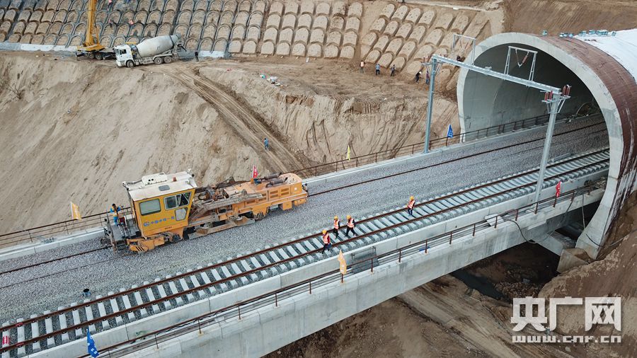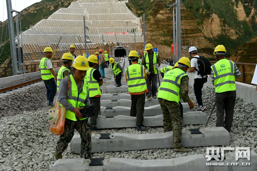 西銀客專甘肅省慶陽市寧縣境內(nèi)中鐵一局新運(yùn)公司員工進(jìn)行最后的工序作業(yè)。(央廣網(wǎng)發(fā) 通訊員供圖) 西銀客專南起陜西省省會西安,向西北經(jīng)陜西省咸陽市、甘肅省慶陽市、寧夏回族自治區(qū)吳忠市后,接入銀川市。設(shè)計速度250公里/小時,并預(yù)留350公里/小時的有砟高鐵提速條件。中鐵一局西銀客專甘寧段鋪架項目部負(fù)責(zé)人王小剛介紹,西銀客專于2015年年底開工建設(shè),計劃于今年年底建成通車!拔縻y客專全線全長618公里,這條線是我國一次性建成最長的有砟客運(yùn)專線。施工過程中面臨運(yùn)輸距離長,坡道變化大,交叉施工多、安全風(fēng)險大,施工環(huán)境惡劣等諸多困難。為此,我們運(yùn)用了國內(nèi)最先進(jìn)的CPG500型和TCM60型鋪軌機(jī),采用三班輪流作業(yè),經(jīng)過21個月的艱苦奮戰(zhàn),今天終于鋪通了!”