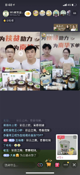 新華網(wǎng)南京9月29日電(龐雪。9月28日晚,東南大學(xué)開展了一場(chǎng)名為“為扶貧助力,為南華下單”的公益直播。學(xué)校扶貧掛職干部、少年班學(xué)生、研究生支教團(tuán)成員輪番登場(chǎng),充當(dāng)“主播”,通過網(wǎng)絡(luò)直播帶貨的形式為學(xué)校定點(diǎn)扶貧的云南省南華縣推介農(nóng)產(chǎn)品,助力消費(fèi)扶貧;同時(shí),直播收益也將用于資助當(dāng)?shù)貙W(xué)生,助力教育扶貧。