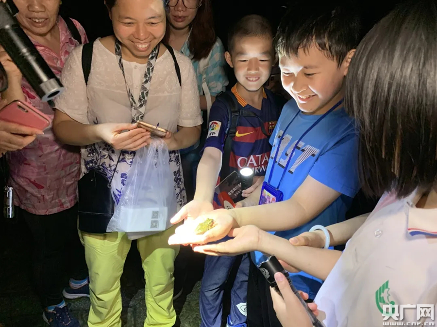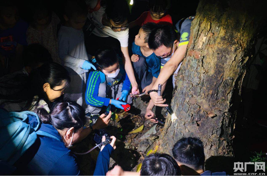科學(xué)中心之夜現(xiàn)場節(jié)目互動(dòng)受歡迎(央廣網(wǎng)發(fā) 廣東科學(xué)中心供圖) 除了廣東科學(xué)中心,其它科普基地同樣熱鬧。在廣州動(dòng)物園,大小朋友在動(dòng)物園里觀察野生小動(dòng)物和圈養(yǎng)保護(hù)動(dòng)物的夜間行為,以不一樣的視角了解動(dòng)物們奇特的夜晚狀態(tài),在科普老師帶領(lǐng)下認(rèn)識(shí)生物多樣性。在華南植物園,孩子與家長們?cè)跇湎掠^察前四后五的“腳趾”的斑腿泛樹蛙、抱卵撫育的高腳蜘蛛,與“跳高冠軍”廣翅蠟蟬幼蟲互動(dòng)……科普老師引導(dǎo)孩子們一起探索自然,發(fā)現(xiàn)自然科學(xué)之美;“鳴春谷奇妙夜”不僅有科普講座,還有夜觀導(dǎo)賞體驗(yàn);廣東省土壤科學(xué)博物館舉辦“土壤健康怎么測”科普小課堂,帶領(lǐng)觀眾動(dòng)手作實(shí)驗(yàn),傳播健康土壤、愛護(hù)土壤、生態(tài)文明的觀念。