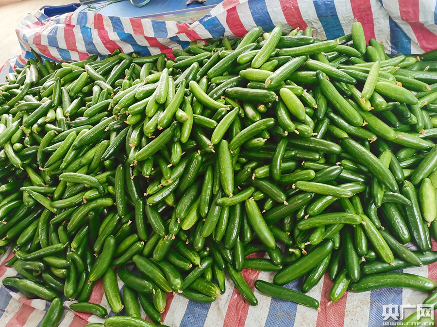 圖為剛剛摘下的黃瓜(央廣網(wǎng)記者 杜靜 攝) 目前,通過“企業(yè)+黨支部+合作社+農(nóng)戶”的經(jīng)營模式,園區(qū)建設(shè)正撬動(dòng)全縣產(chǎn)業(yè)發(fā)展不斷農(nóng)業(yè)增效、農(nóng)牧民增收成效明顯。園區(qū)解決貧困戶及各類人員就近就業(yè)400余人,固定工月工資2600元以上,臨時(shí)用工每天100-120元不等,僅2018年度支付當(dāng)?shù)貏?wù)工人員工資達(dá)1200萬元。 |