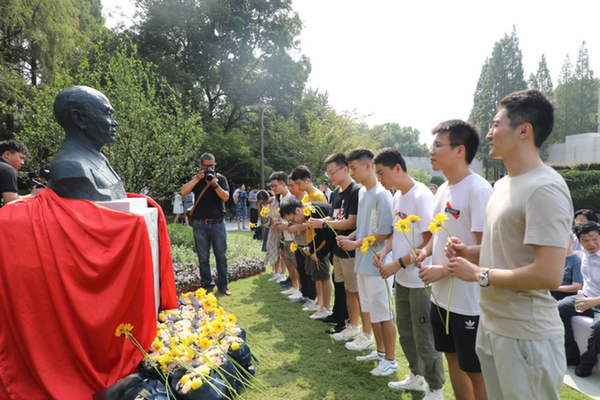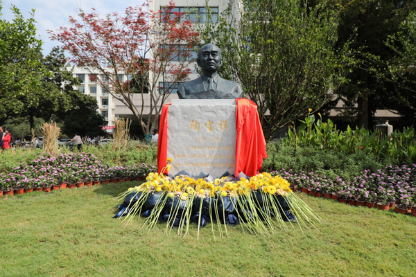 學(xué)生向陶寶祺院士雕塑獻花 在該校明故宮校區(qū)東華湖畔,陶寶祺院士雕塑揭幕。據(jù)介紹,陶院士作為機械結(jié)構(gòu)力學(xué)及控制國家重點實驗室的奠基人之一,是南航培養(yǎng)的第一位院士,為南航力學(xué)學(xué)科的發(fā)展做出了突出貢獻。 “父親是南航人,四十余年,他與南航互相成就!痹诮夷粌x式上,陶寶祺院士的女兒陶寧說,“父親告訴我,要做好人。他是如此要求自己的,也是如此要求我的,更是如此要求學(xué)生的!睋(jù)陶寧回憶,陶寶祺院士1991年訪學(xué)回國之際,沒有帶其他行李,只有八大箱的外文資料,這也成為了1992年智能材料與結(jié)構(gòu)小組組建之初的重要支撐。46歲時,出于學(xué)生知識體系的考量,陶院士主動提出開設(shè)“張量與連續(xù)介質(zhì)力學(xué)”新課,在學(xué)校缺乏師資的情況下,他背著鋪蓋去了浙江大學(xué),跟本科生一起聽課一學(xué)期,之后回來在南航開設(shè)新課程。陶院士病重期間,他在病床上仍然堅持編寫教材,出版了《智能材料結(jié)構(gòu)》專著,并成功申請了國家重點實驗室,獲得國家自然科學(xué)基金項目驗收等。