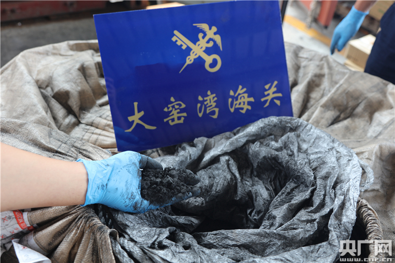 大連海關(guān)查獲的“洋垃圾”(李進 攝) 海關(guān)關(guān)員在對一票從國外進口申報品名為次氧化鋅的貨物查檢時,發(fā)現(xiàn)其為灰黑色粉末,有少量銀色顆粒及浮渣,疑似為我國禁止進口固體廢物,隨即進行取樣送檢。經(jīng)過對該樣品進行固體廢物進行屬性分析鑒定,該樣品氧化鋅含量不符合標(biāo)準(zhǔn)的限量要求,被認(rèn)定為含鋅、銅等廢料經(jīng)冶煉工藝產(chǎn)生的含鋅粉塵收集物,不符合國家、地方制定或行業(yè)通行的被替代原料生產(chǎn)的產(chǎn)品質(zhì)量標(biāo)準(zhǔn),該批貨物被判定屬于禁止進口的固體廢物。 |