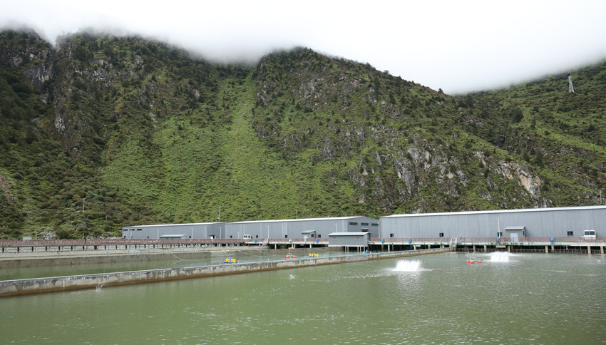 生態(tài)產(chǎn)業(yè)園內(nèi)的養(yǎng)魚池(央廣記者普布次仁 攝) 貢布是西藏高峰生態(tài)科技有限公司總經(jīng)理,他的公司負(fù)責(zé)亞東縣立體生態(tài)產(chǎn)業(yè)園鮭魚產(chǎn)業(yè)的管理、運營及銷售。貢布介紹:“17年公司成立后收購原先4個村居合作社養(yǎng)殖的鮭魚,老百姓分了三百多萬,養(yǎng)出來的魚不愁賣,也規(guī)范了鮭魚的市場。此外,公司每年還會給公司所在地老百姓40萬元左右的土地流轉(zhuǎn)費!