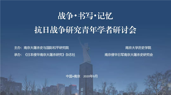 今年是中國人民抗日戰(zhàn)爭勝利75周年,為銘記抗戰(zhàn)記憶,加強(qiáng)青年學(xué)者之間的學(xué)術(shù)交流,9月16-17日,由南京大屠殺史與國際和平研究院、南京大學(xué)歷史學(xué)院主辦,《日本侵華南京大屠殺研究》雜志、南京侵華日軍南京大屠殺史研究會(huì)承辦的“戰(zhàn)爭·書寫·記憶:抗日戰(zhàn)爭研究青年學(xué)者研討會(huì)”以線上形式召開。