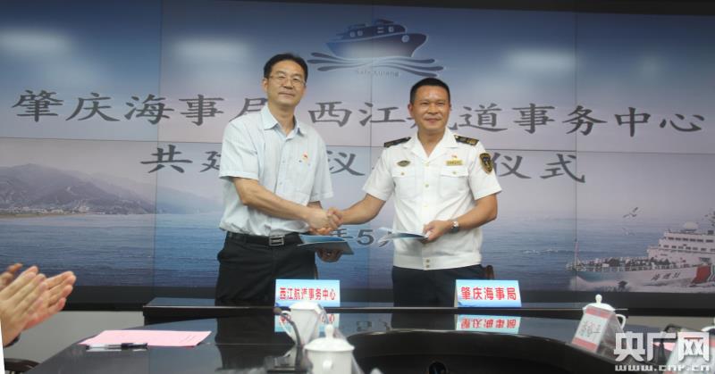 “平安港區(qū)”共建協(xié)議簽署(央廣網(wǎng)發(fā) 肇慶海事局供圖) 肇慶海事局堅持多部門聯(lián)防聯(lián)控機制,與肇慶市水利、氣象、水文、海關(guān)、邊防等涉水部門簽訂共建協(xié)議,共同形成西、北江水上安全監(jiān)管合力。據(jù)悉,三年來共清理住家船507艘、閑置船102艘、網(wǎng)箱養(yǎng)殖156艘,搬遷船廠4家,清理取締非法碼頭、臨時裝卸點119個,打掉一大批非法采砂點,處理扣押采運沙船29艘,責(zé)令非本船籍港采沙工程船離開本轄區(qū)42艘。