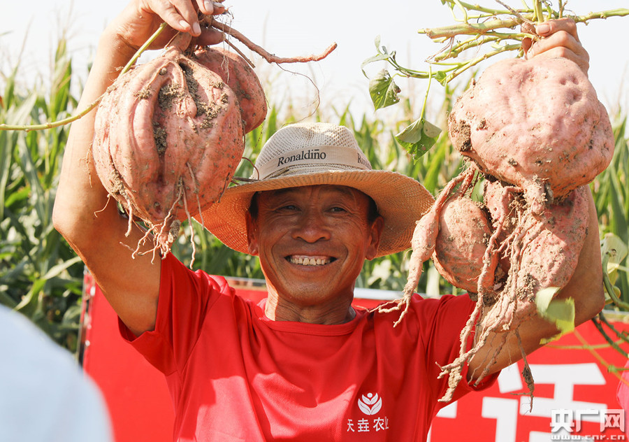 9月20日,在天津市武清區(qū)豆張莊鎮(zhèn)周立營村田野里,一場“歡慶豐收 助力鄉(xiāng)村振興”為主題的慶祝農民豐收節(jié)活動正在舉行,村民手舉著剛剛從地里挖出的煙薯(央廣網(wǎng)記者 劉陽 攝) 央廣網(wǎng)天津9月22日消息(記者劉陽)9月22日是秋分,也是第三個“中國農民豐收節(jié)”。作為天津市寶坻區(qū)特產“三辣”之一的天鷹椒日前喜獲豐收,另一“辣”五葉齊大蔥也長勢良好。天津市薊州區(qū)的晚熟桃品種“雙節(jié)紅”也已開摘,為豐收節(jié)獻禮。 |