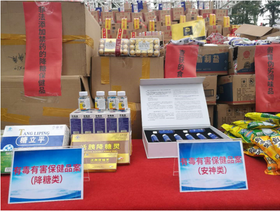 省暨南京主會(huì)場活動(dòng)現(xiàn)場 在省暨南京主會(huì)場,江蘇省公安廳食藥環(huán)偵總隊(duì)和南京市公安局集中曝光了一批重大食品犯罪案件,現(xiàn)場展示了案件中查獲收繳待銷毀的假劣酒水飲料、調(diào)味品、零食、保健品、種子等涉案物品,并設(shè)立法律咨詢臺(tái)、發(fā)放宣傳手冊,廣泛宣傳法律政策。各地公安機(jī)關(guān)在當(dāng)?shù)胤謺?huì)場通過實(shí)物展示、案例曝光、現(xiàn)場咨詢等方式同步舉行了宣傳展示活動(dòng),通報(bào)了當(dāng)?shù)卮驌羰称贩缸锕ぷ鞒尚В俅喂剂伺e報(bào)方式,廣泛發(fā)動(dòng)群眾積極參與食品安全治理工作。省及各地市場監(jiān)管、農(nóng)業(yè)農(nóng)村等部門相關(guān)處室負(fù)責(zé)同志以及街道社區(qū)群眾、相關(guān)企業(yè)代表參加活動(dòng)。全省集中開展宣傳展示活動(dòng),充分體現(xiàn)了全省公安機(jī)關(guān)打擊食品犯罪的堅(jiān)強(qiáng)決心,切實(shí)提高了群眾的法律意識(shí)和辨識(shí)能力,有力促進(jìn)了食品領(lǐng)域共建共治共享社會(huì)治理體系建設(shè)。 近年來,全省公安機(jī)關(guān)高度重視食品安全工作,積極構(gòu)建食品犯罪專業(yè)偵查體系,目前省市縣三級(jí)公安機(jī)關(guān)均成立了專門機(jī)構(gòu)并配備專業(yè)民警,成為打擊食品犯罪的中堅(jiān)力量。今年以來,全省公安食藥環(huán)偵部門緊緊圍繞新冠肺炎疫情防控和“六穩(wěn)六保”工作大局,積極會(huì)同市場監(jiān)管、農(nóng)業(yè)農(nóng)村等行政部門,以“昆侖2020”專項(xiàng)行動(dòng)為載體,集中向各類食品犯罪發(fā)起凌厲攻勢。
